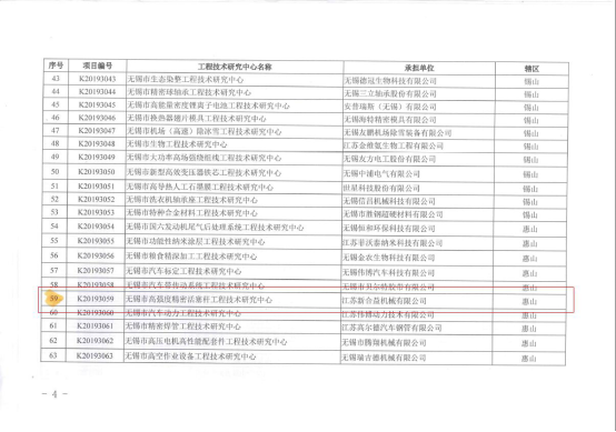 無錫市科學(xué)技術(shù)局文件:錫科研【2019】155號(hào)文,關(guān)于下達(dá)2019年度無錫市工程技術(shù)研究中心建設(shè)項(xiàng)目的通知,江蘇新合益機(jī)械有限公司獲得“無錫市高強(qiáng)度精密活塞桿工程技術(shù)研究中心”稱號(hào),此項(xiàng)目成功獲批是新合益積極推進(jìn)企業(yè)自主創(chuàng)新能力建設(shè)加速科技基礎(chǔ)平臺(tái)建設(shè)所取得的又一成果。
